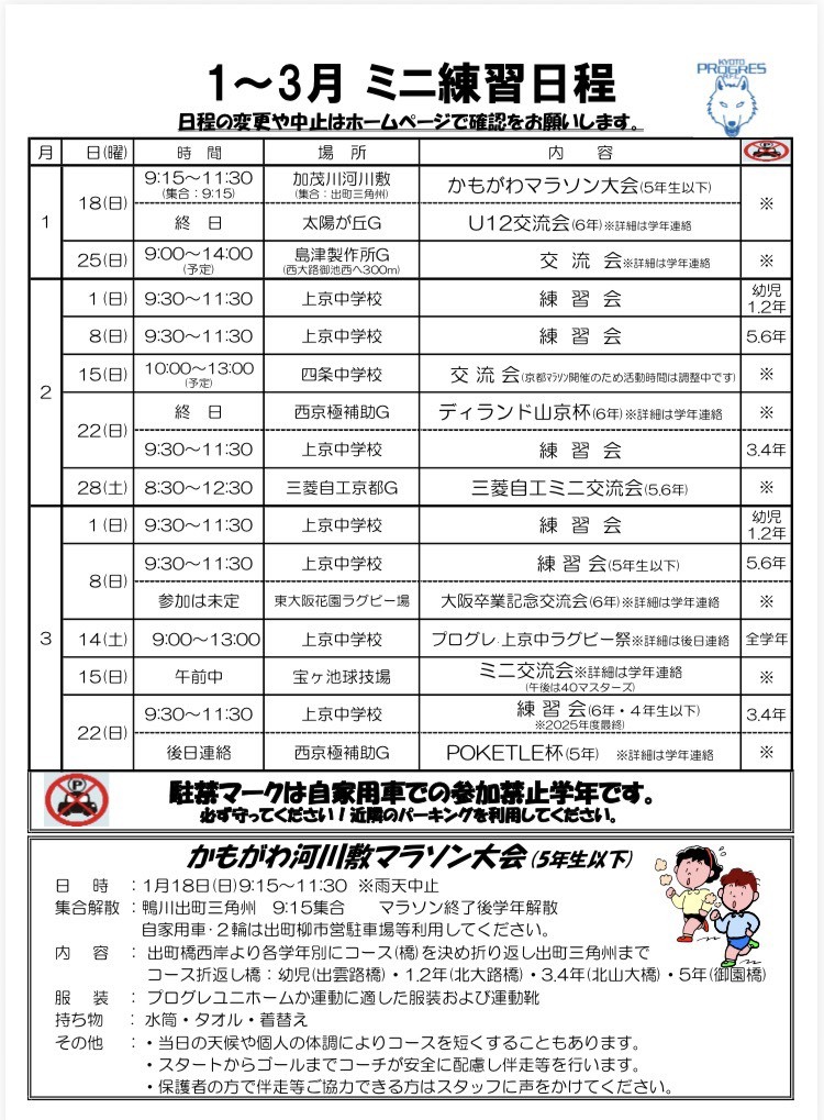 ミニ練習日程